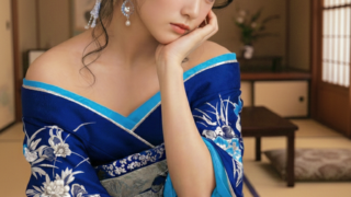 伝統とモダンが交差する、「和洋折衷」な青の着物スタイルこの記事のポイント伝統的な和室を背景に、青を基調とした和洋折衷の着物スタイルの魅力がわかります。豪華な花の髪飾りやシニヨン風のヘアアレンジなど、詳細なスタイリングの参考になります。超リア...