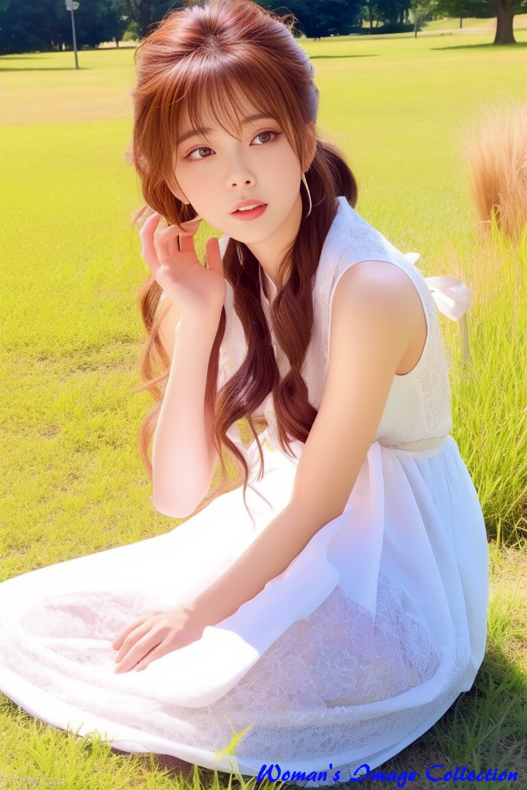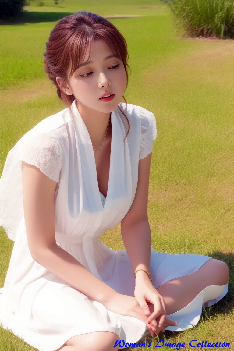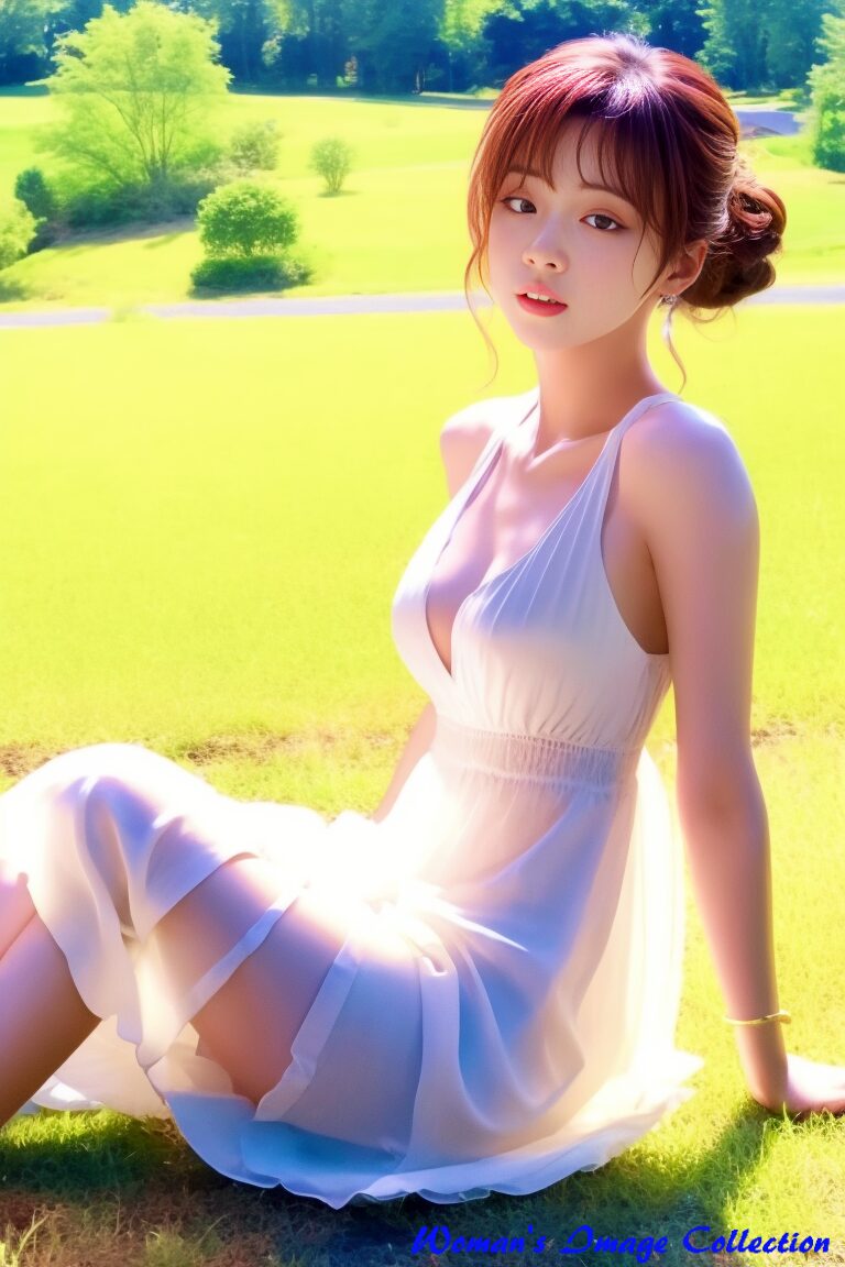 やわらかな日差し、心地よい風。そして、芝生に佇むひとりの女性。