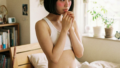ローアングルからの構図により、より親近感の湧く「クラスメイトをスマホで撮ったような」リアルな空気感が強調されています。