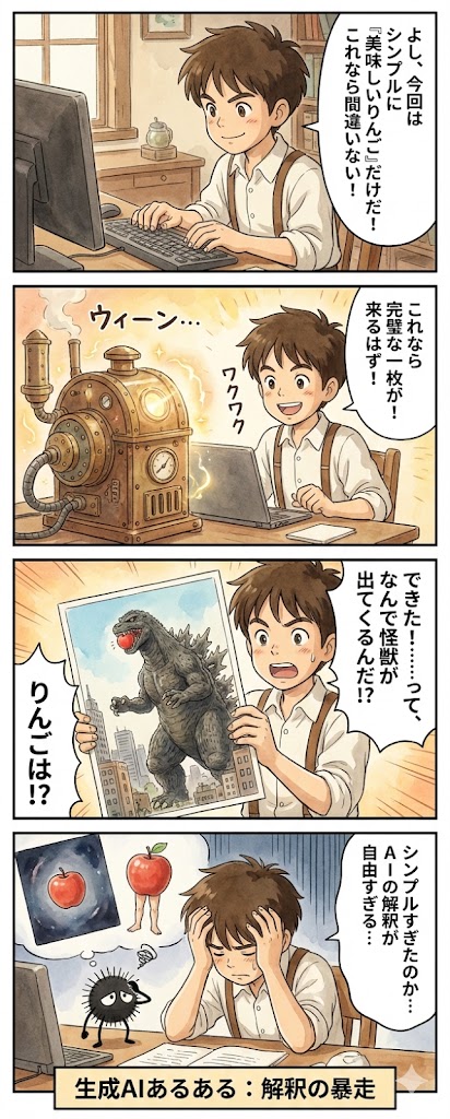 生成AIあるある No3 X はてブ LINE Pinterest コピー 2025.12.05Views: 44コマ漫画を作ってみたので紹介します。普通のとは別に、毎日1枚、できる範囲で紹介していきたいと思っています。
