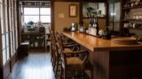 詳細 (舞い落ちる雪の結晶, 吐く息の白さ, 建物の木材の質感, ジャケットの毛羽立ち, 寒さと温かさのコントラスト, 幻想的で魔法のような瞬間)