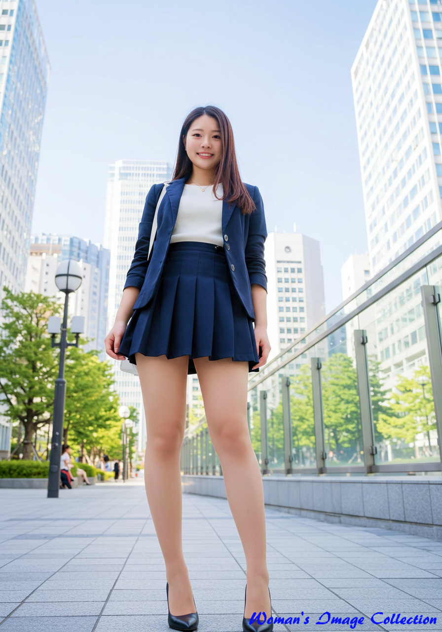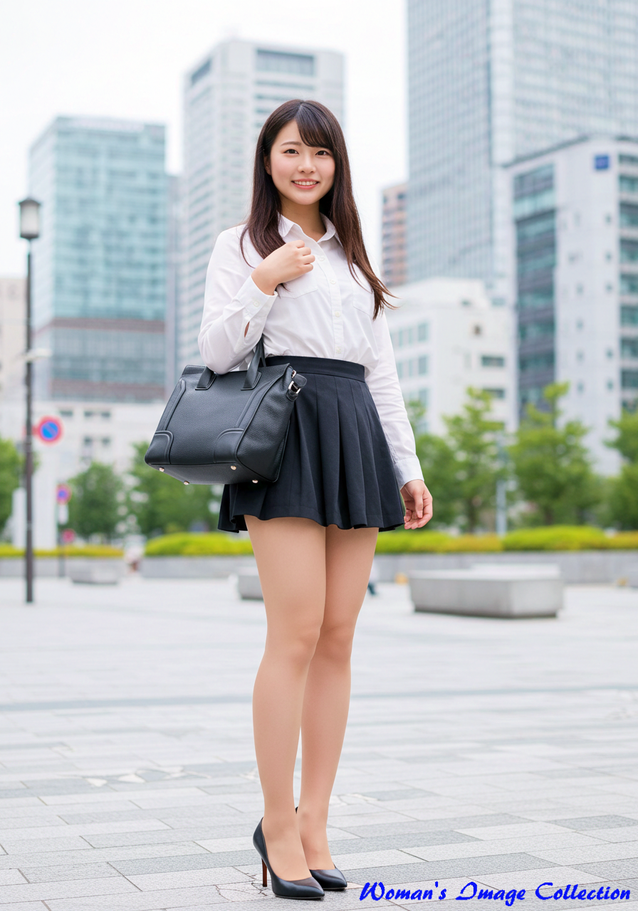 白のワンピースって、着る人の雰囲気がそのまま出る服やと思うんよ。ちょっと間違えたら目立ちすぎるし、慎ましさがなければ浮いてしまう。けど、この子はほんまにうまく着こなしてるなぁ。ウエストラインが綺麗に出てて、スカートの裾も軽やかに広がって、歩くたびに風に揺れてそうなシルエット。なんというか、都会の風景の中でひときわ“やさしさ”がにじみ出てる感じがする。