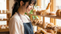 優雅なカフェで「アンティークの椅子」と「穏やかな雰囲気」に焦点を当てた一枚です。椅子の装飾とドレスの細かなディテールが一致し、全体の色調がよりパステルカラーに寄ることで、絵画のような柔らかい印象へと変化しています。