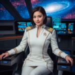 今回は秋の屋外に立つ、白い服の女性のブロンプトです。今回の画像は「豊かな胸元を強調するデザイン」というブロンプトが効いたのか、胸が少し大きすぎる女性になってしまいました。