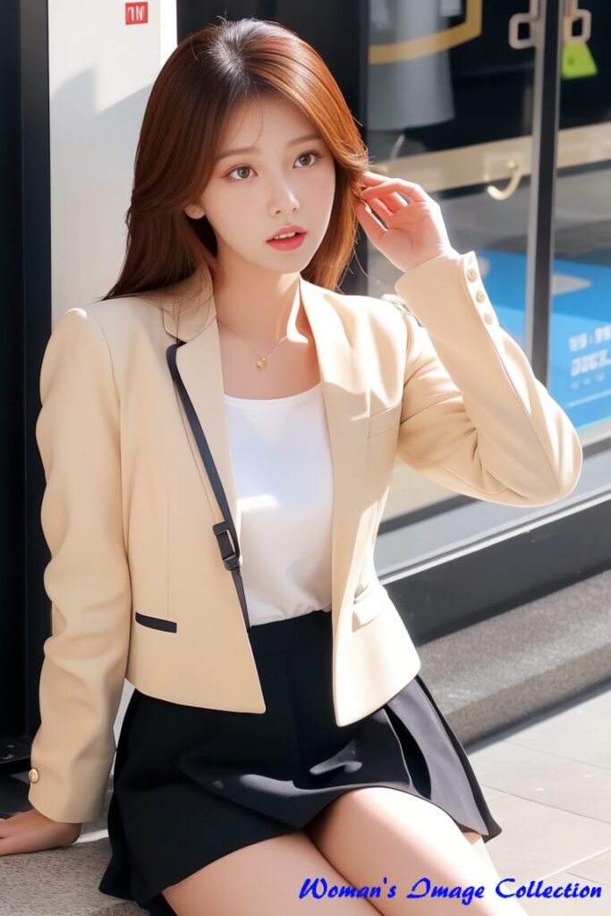 今回ご紹介するのは、知的で洗練されたビジネスカジュアルスタイルの撮影方法です。モデルさんは、シックなネイビーブレザーに白いブラウス、そしてベージュのタイトスカートという王道コーデを着こなし、オフィスシーンにぴったりの上品な雰囲気を醸し出しています。髪型やメイクも清潔感がありつつ、女性らしさが際立つバランスが絶妙です。この記事では、異性からも同性からも好印象を得られる撮影テクニックとコーディネートのポイントを徹底解説します!