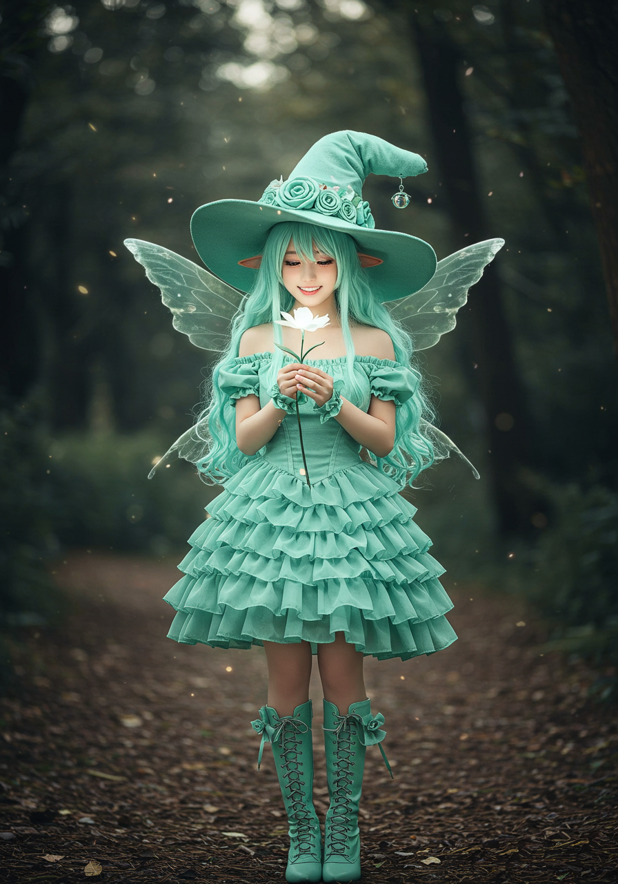 imageFX    秋の小道に立つニーハイブーツの女性のプロンプト
