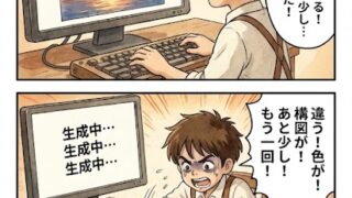 imageFX生成AIあるある No.7 4コマ漫画を作ってみたので紹介します。普通のとは別に、毎日1枚、できる範囲で紹介していきたいと思っています。 2025.12.09imageFX生成AIあるある