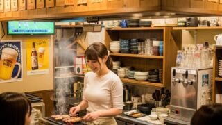 imageFX居酒屋で串を焼く女性のプロンプト 今回は、舞台は居酒屋。カウンター席にある炭焼き台で串を焼く女性。初めは、隅から強い火が出てて、焦げた串になりそうな感じだったので、プロンプトを「炭火が燃える仄かなオレンジ色」②修正した。また、カウンタ席の中で焼く女性にしたかったのですが、カ... 2025.11.20imageFXエプロンシャツ写真集女性居酒屋画像生成プロンプト