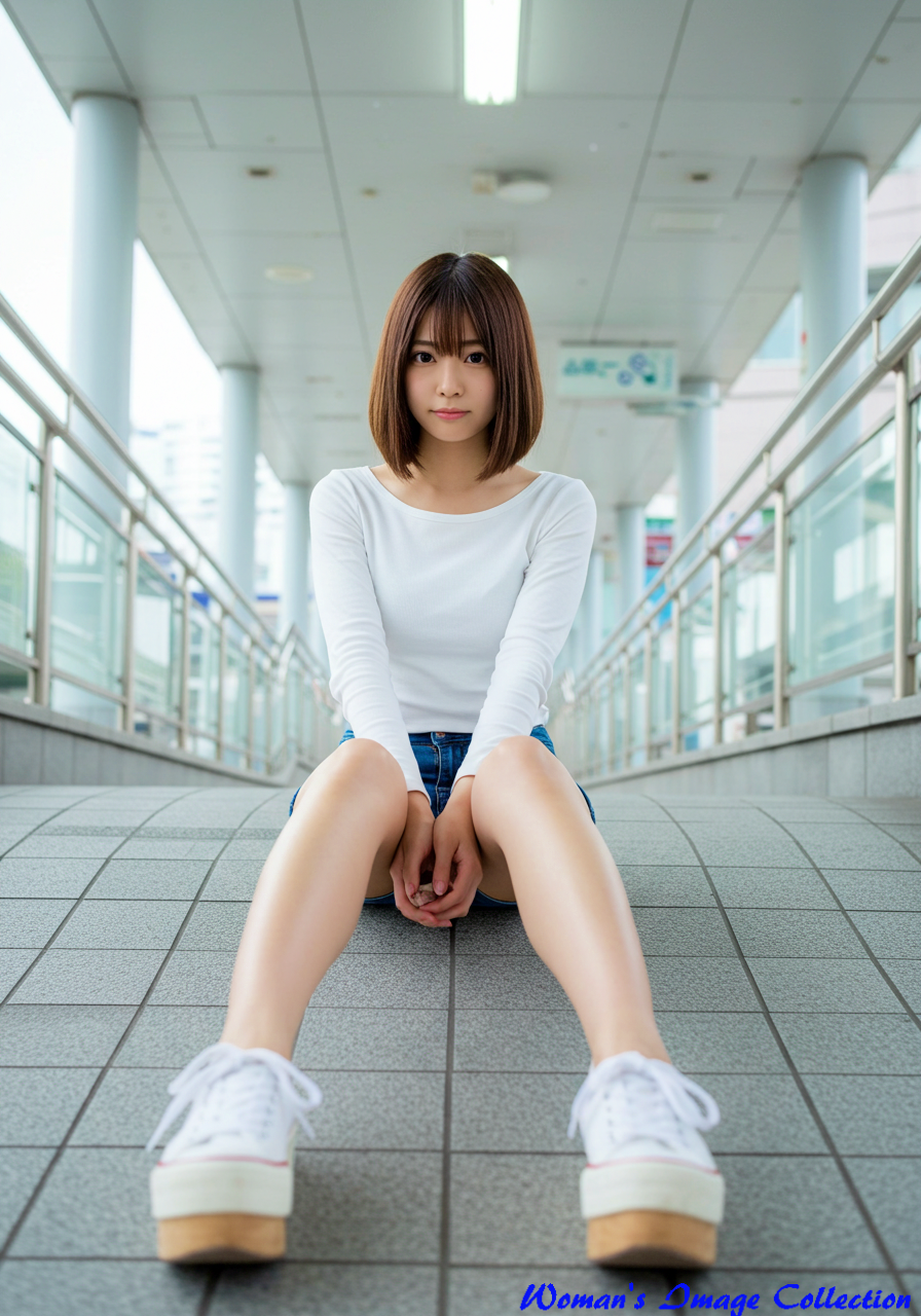 八百屋の前で、白の大きなTシャツを着てカーゴパンツを穿いたポニーテールの女性。モデルのような立ちポーズで、とてもいい感じのかわいい女性の写真になりました。このプロンプトは下のプロンプトの右上にある「□」をクリックすることでコピーすることがで...