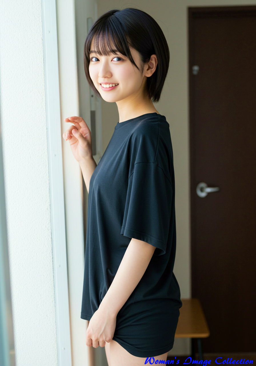Realistic paintings on canvas with a brush stroke of oil and ink. Sensual Japanese girls, various tall, very long legs, slim women, long and large breasts. This full-length portrait of a cute and beautiful Japanese actress in her twenties with a pixie cut features an attractive and natural smile. Paintings of obscene poses. Clothes with obscene tastes favored by men.