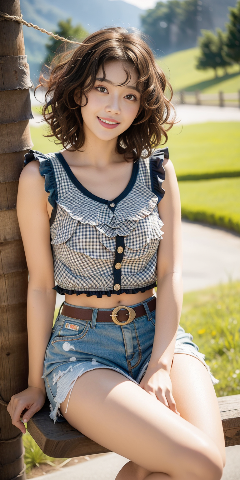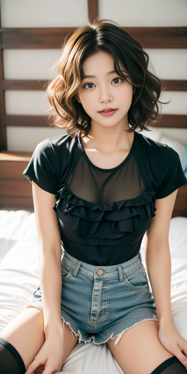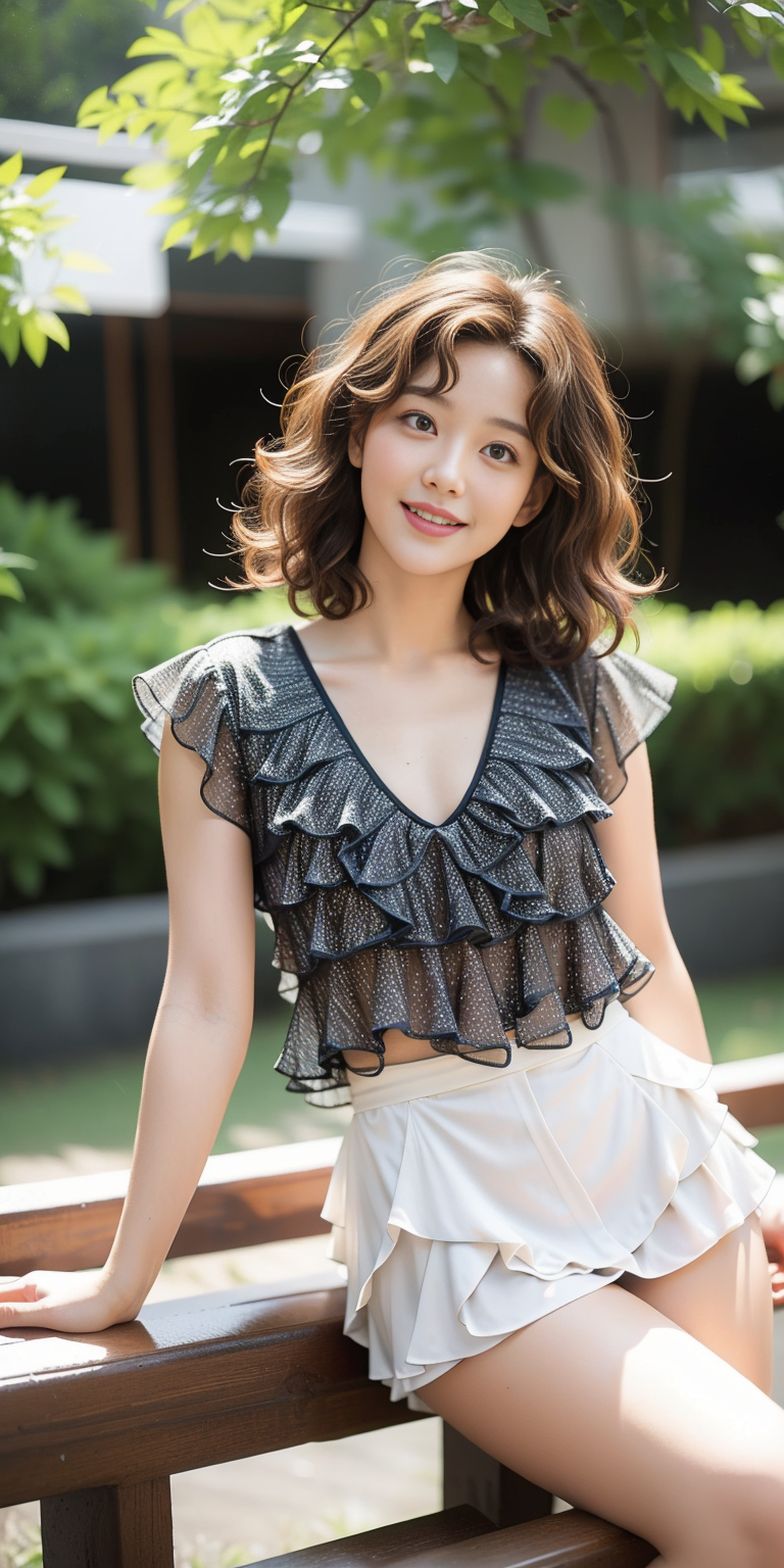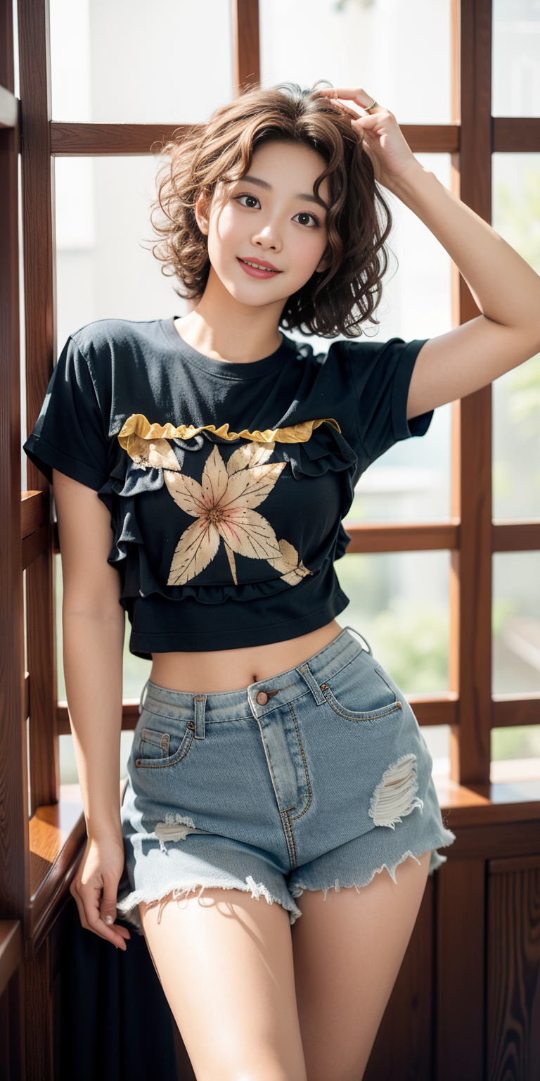 , (Cheerful expression:0.3), (Short layered cut :1.5),(wavy perm:1.3)