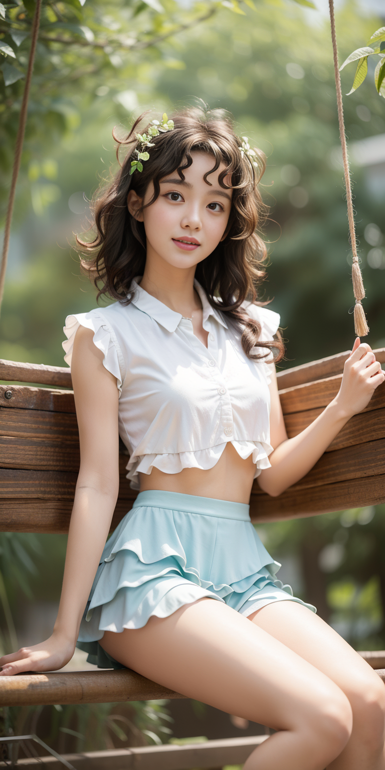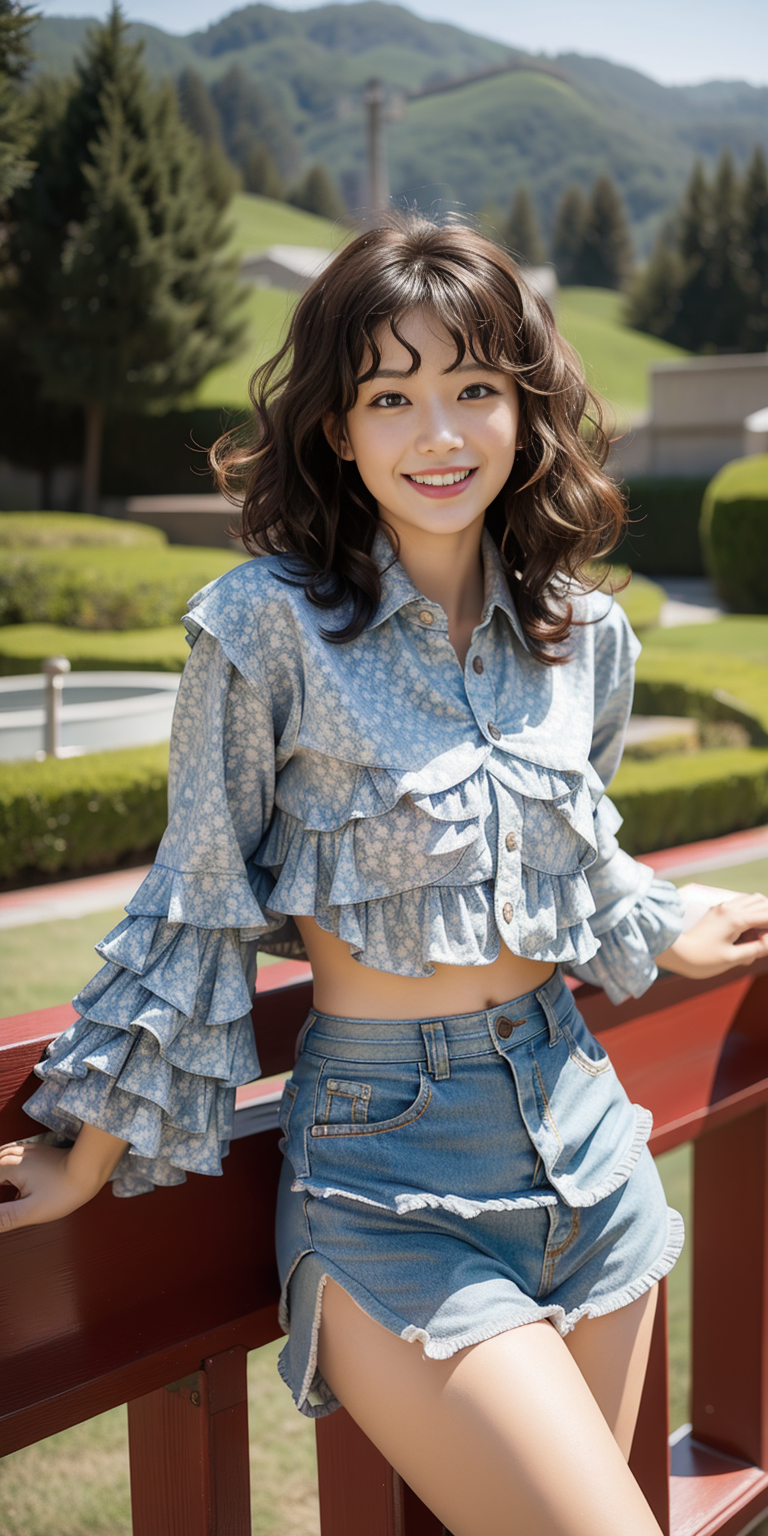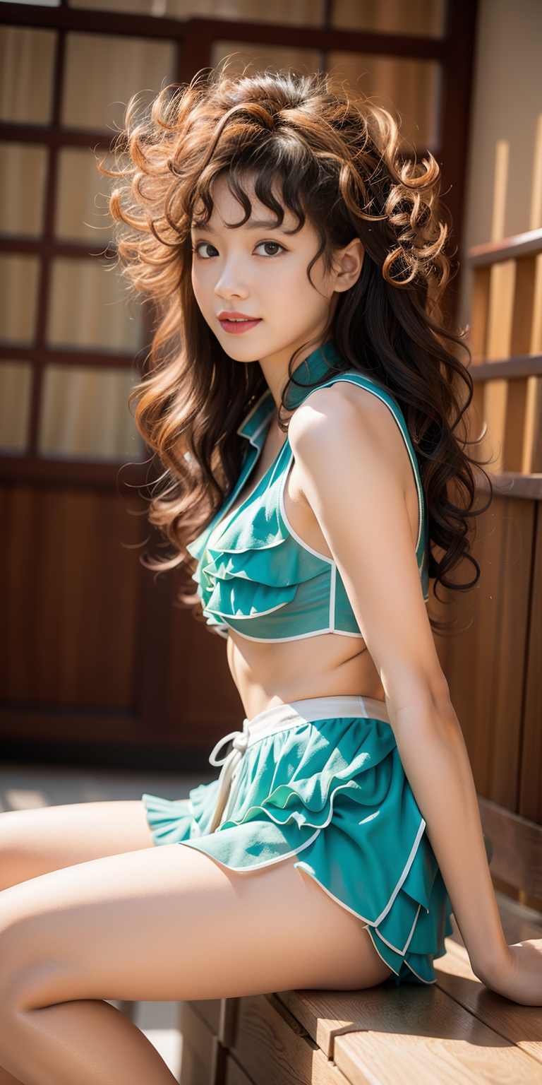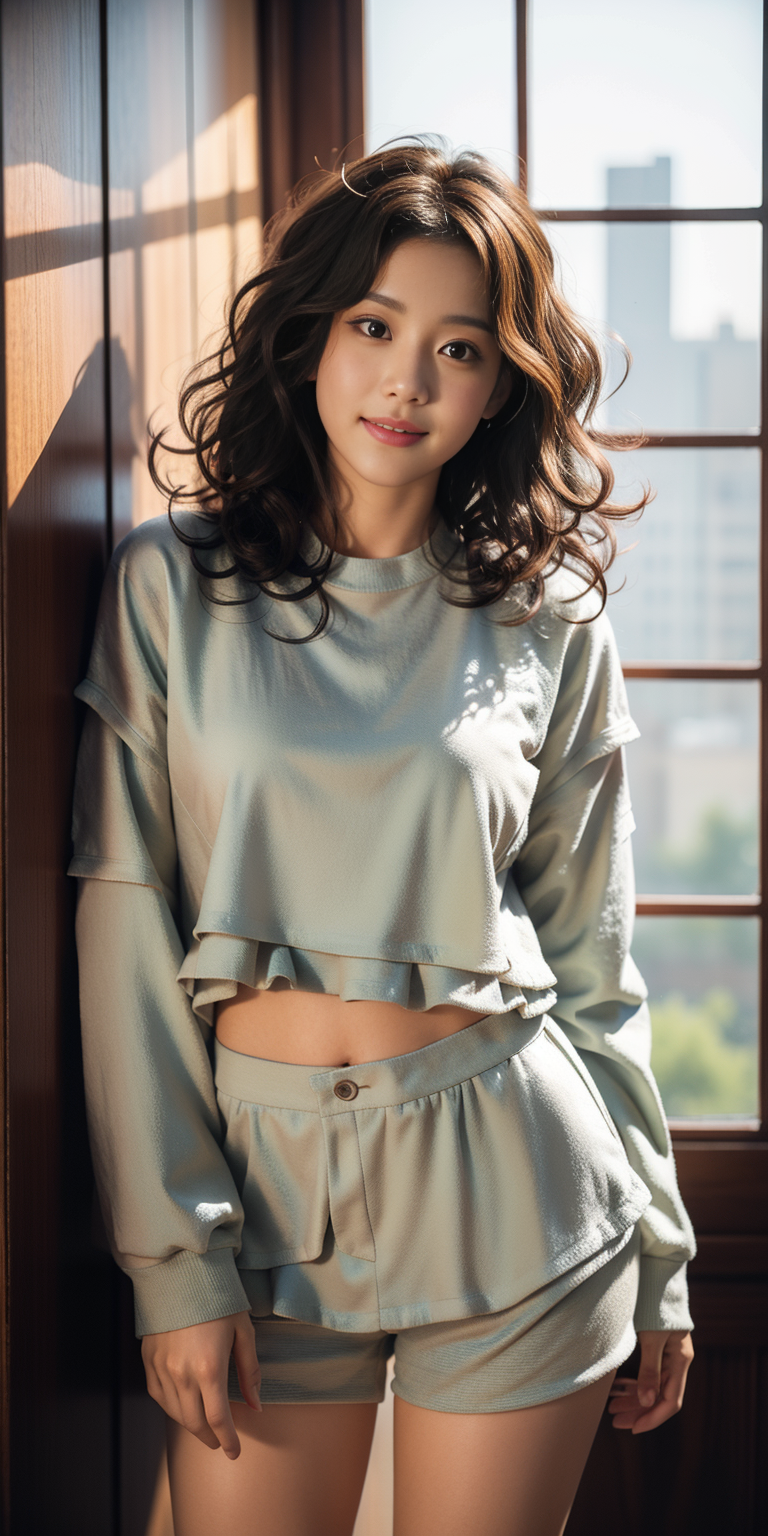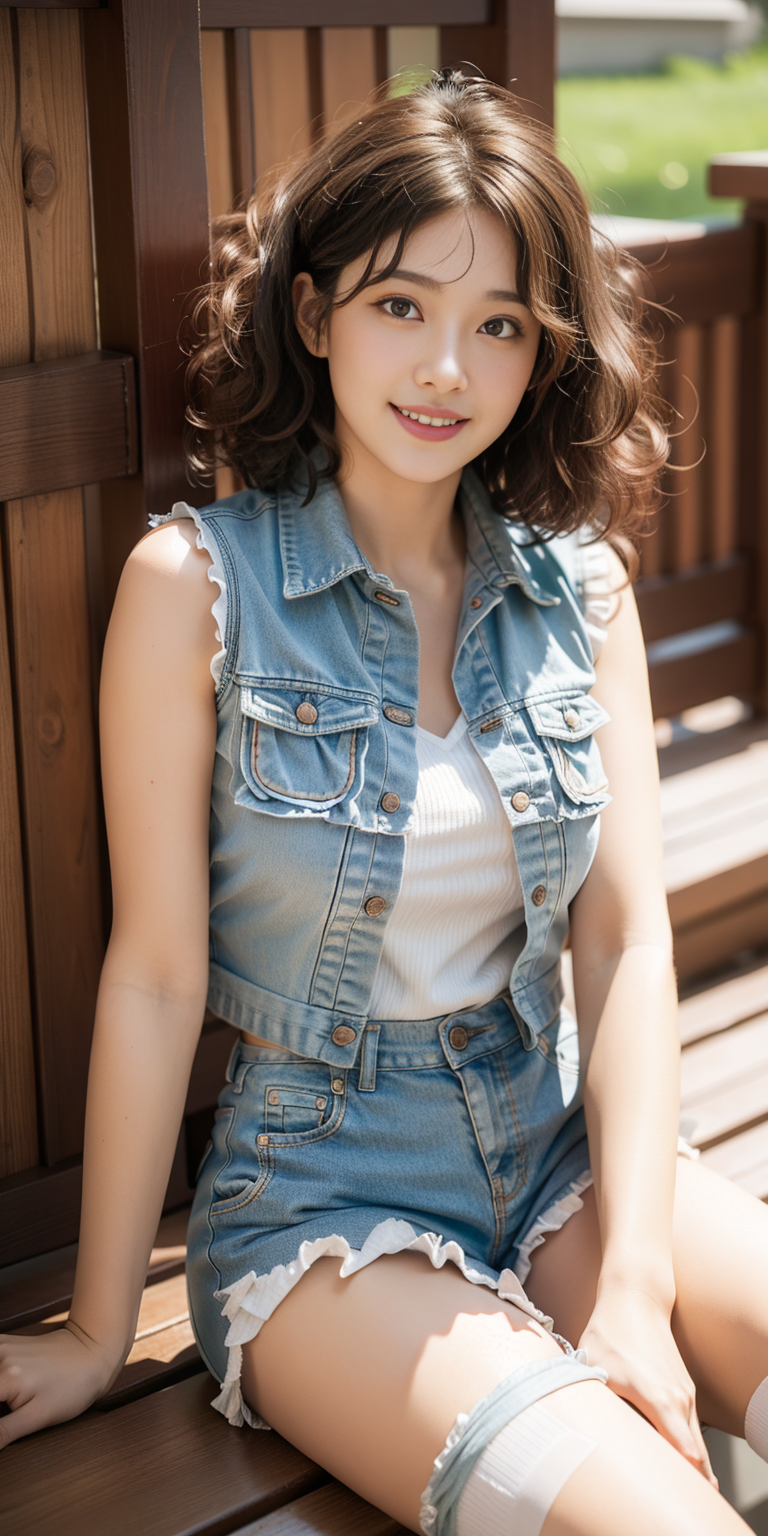 , (Cheerful expression:0.3), (Short layered cut :1.5),(wavy perm:1.3)