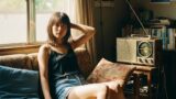 背景の街並みと並木道は、彼女の装いをさらに引き立てています。都会的でありながらも落ち着いた環境が、彼女のシンプルで清楚な装いとマッチし、季節の移ろいを感じさせるシーンに仕上がっています。このような自然光の下での撮影は、肌の美しさや髪のツヤも際立たせ、全体のコーディネートに透明感とナチュラルさを加えています。