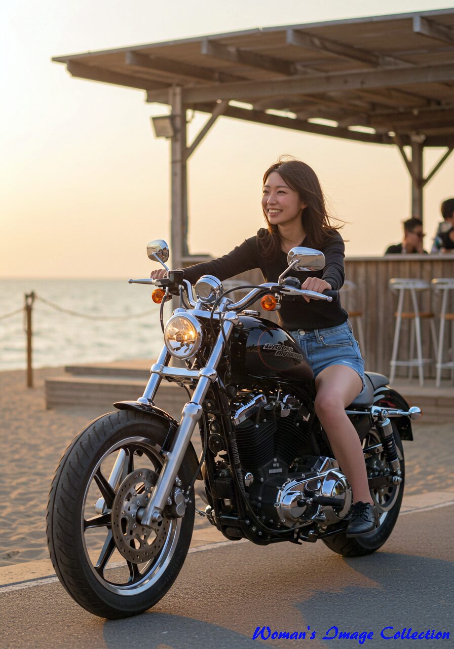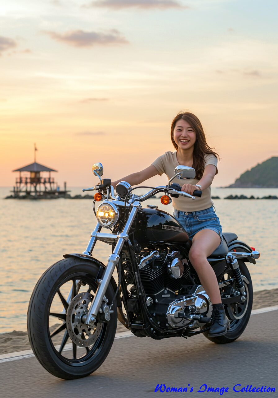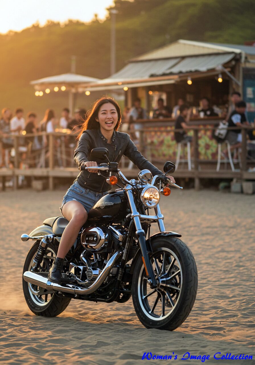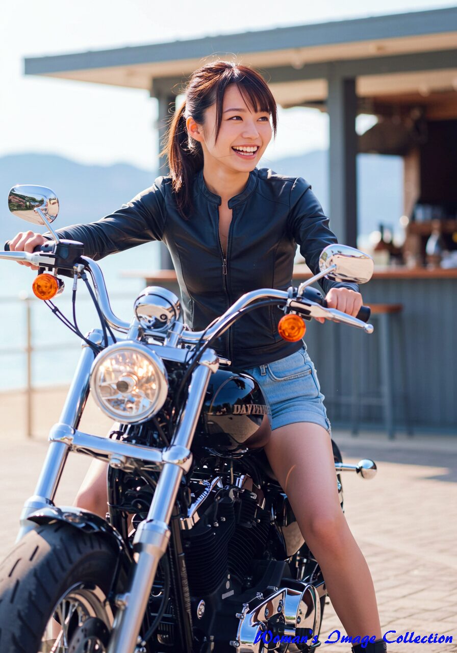 風を切って走るバイクと、太陽の光を浴びて笑顔を見せる女性――そんなシーンにぴったりなのが、今回ご紹介する**「バイカーガール風カジュアルスタイル」です。