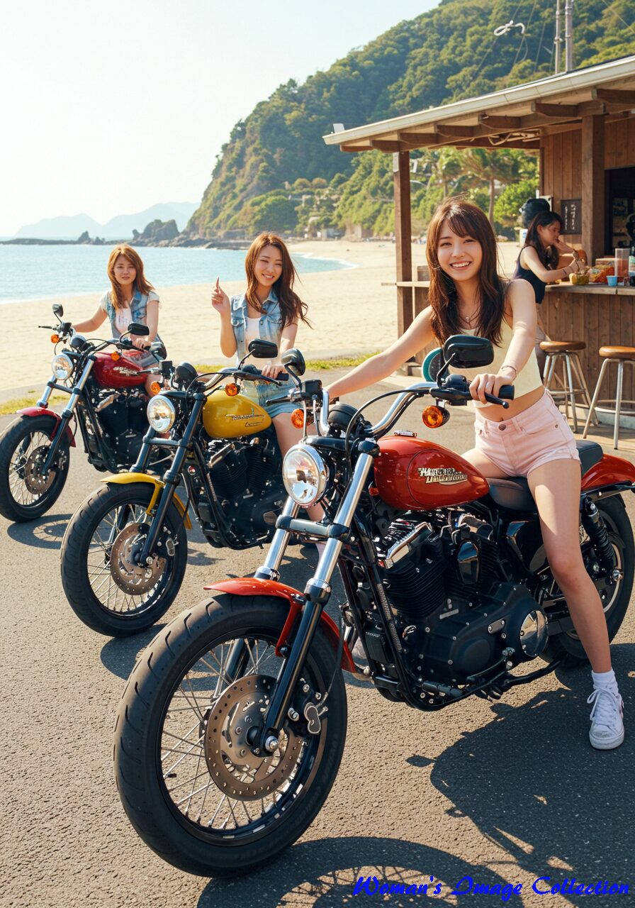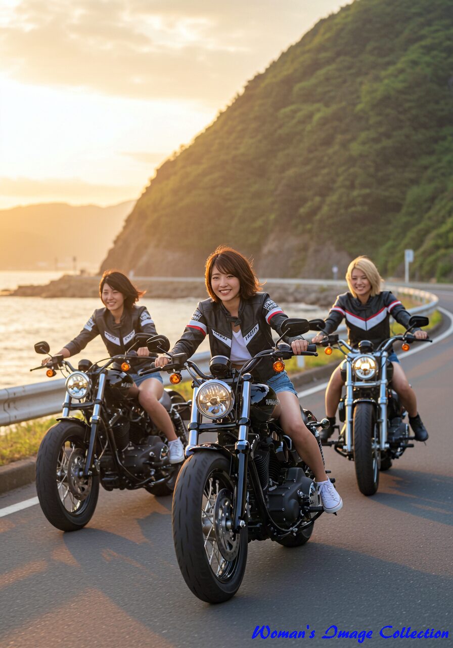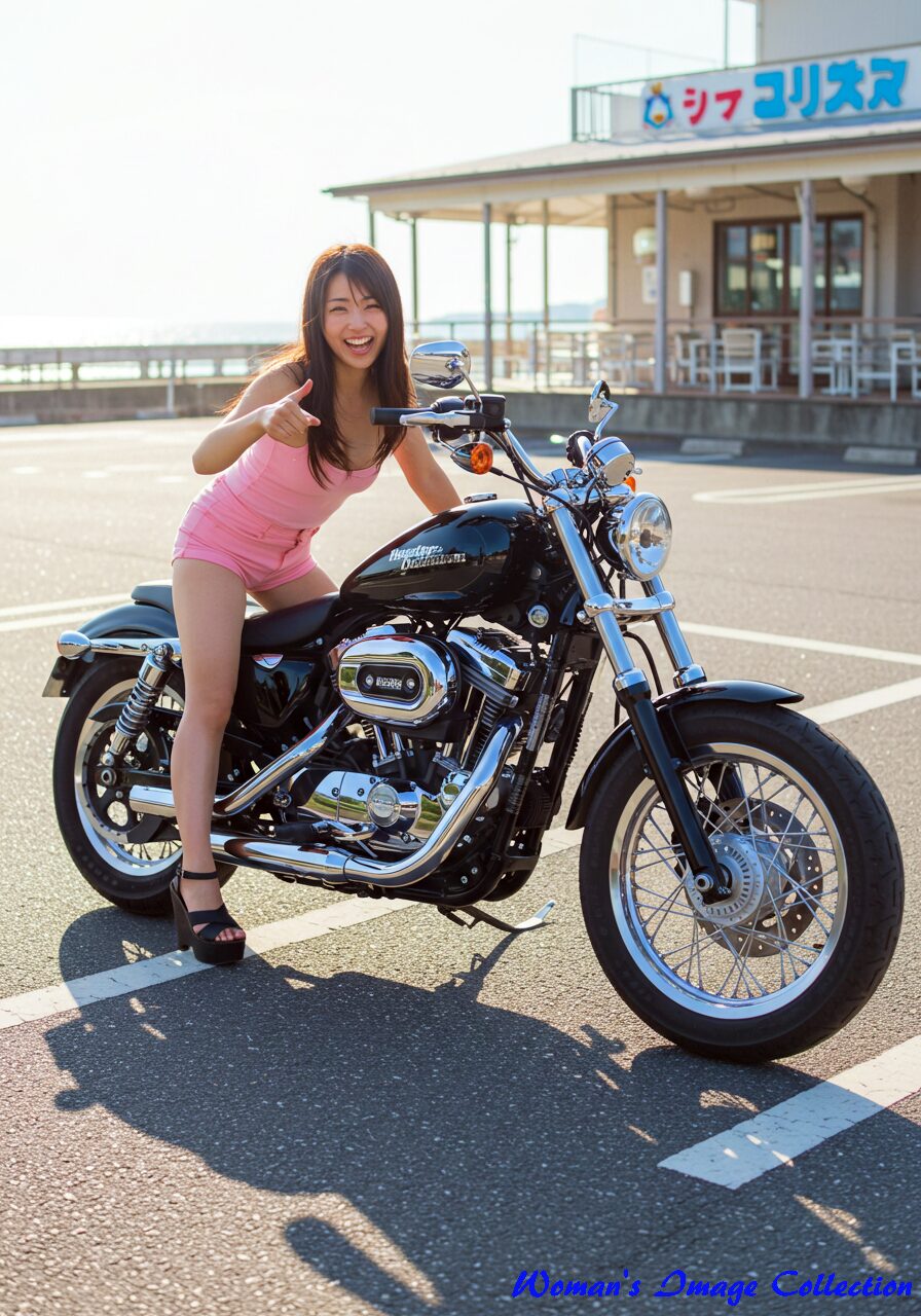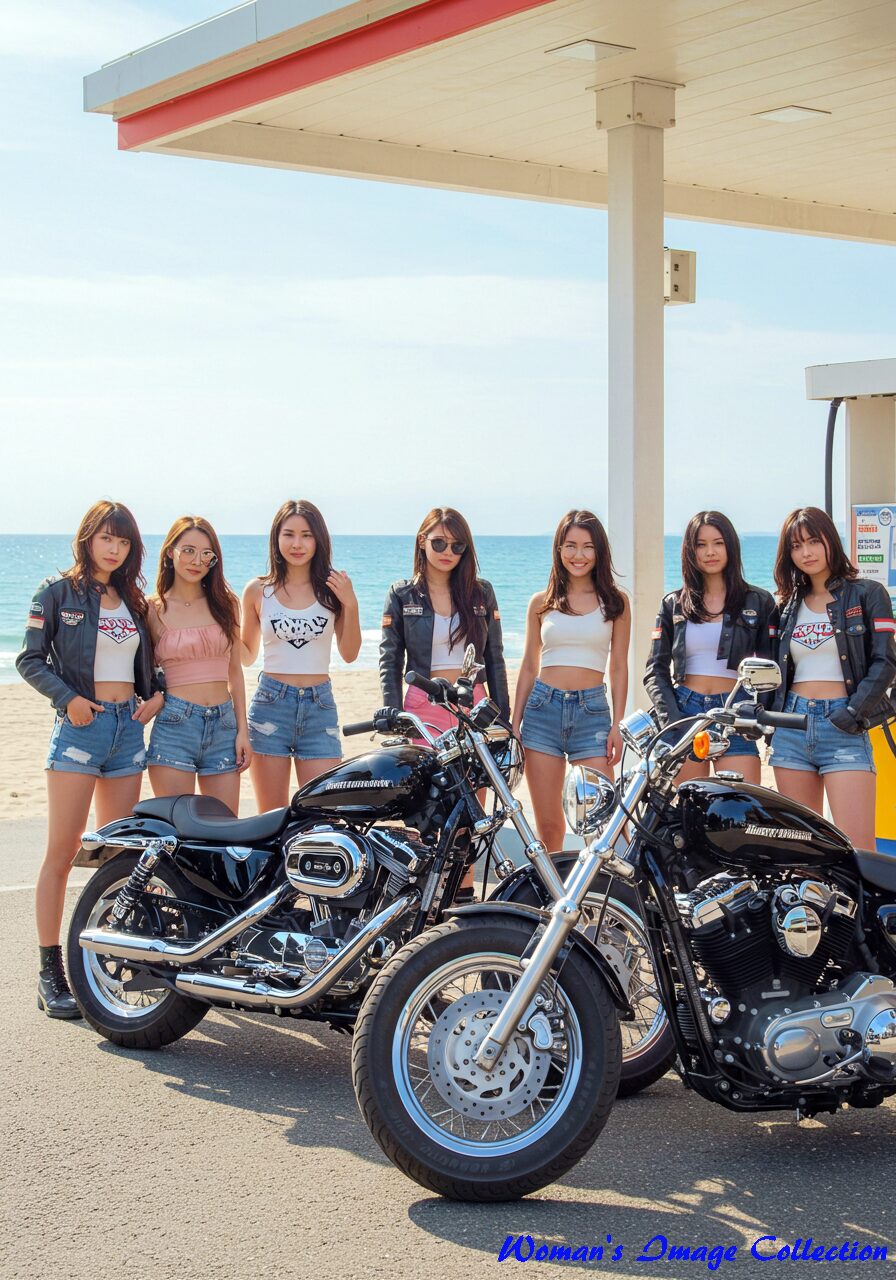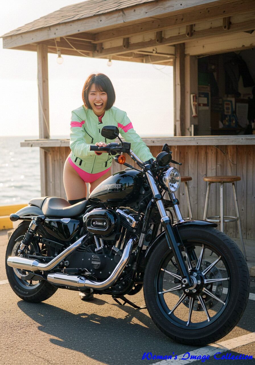 風を切って走るバイクと、太陽の光を浴びて笑顔を見せる女性――そんなシーンにぴったりなのが、今回ご紹介する**「バイカーガール風カジュアルスタイル」です。