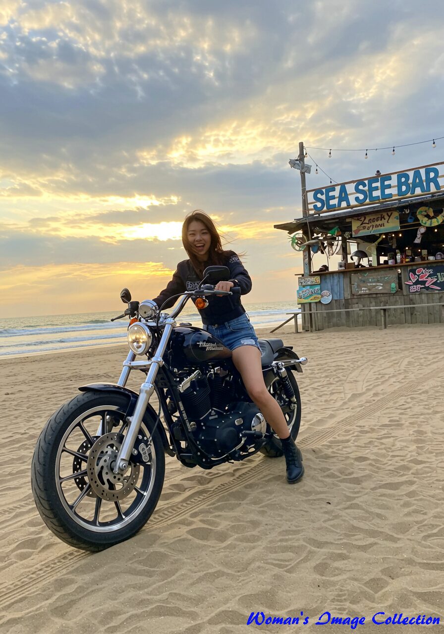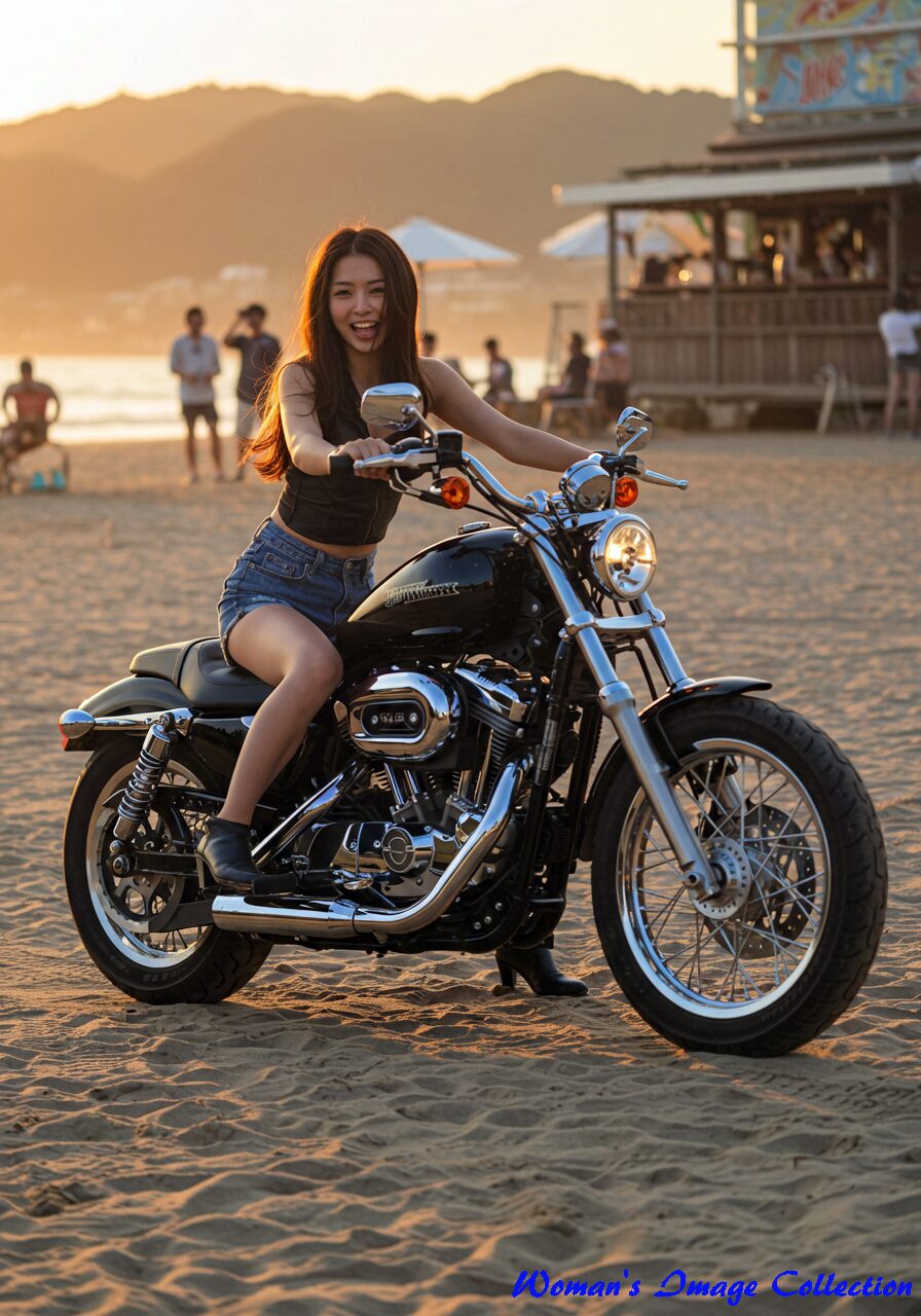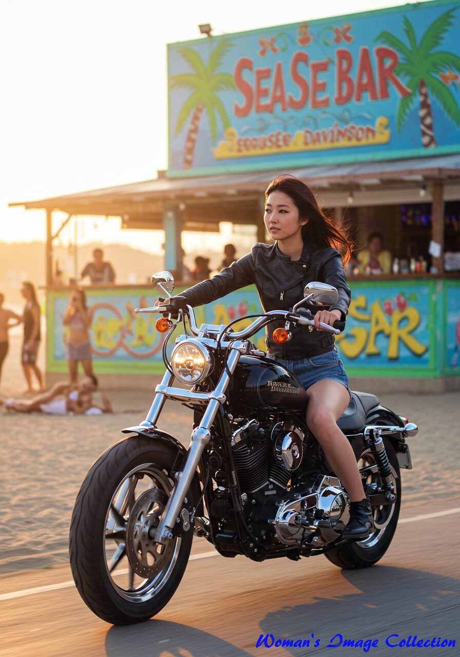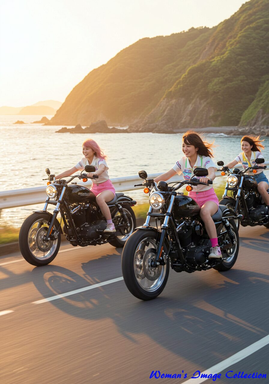 風を切って走るバイクと、太陽の光を浴びて笑顔を見せる女性――そんなシーンにぴったりなのが、今回ご紹介する**「バイカーガール風カジュアルスタイル」です。