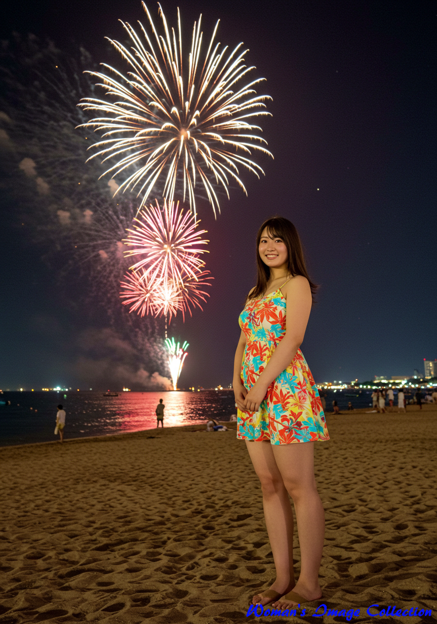 ちょっとくらい暑くても、汗かいても、波に濡れてもええやん。どうせなら、思いっきり笑って、思いっきり飛び跳ねて、夏を満喫しようっていう、そんなポジティブなエネルギーが詰まってる一枚です。