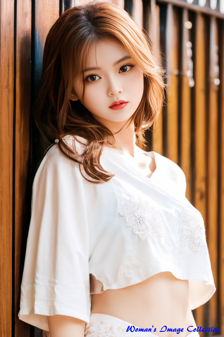 彼女が纏う白いクロップドTシャツは、夏の熱気を帯びた肌を優しく包み込み、その清潔感が、この写真の持つセンシュアルな雰囲気を一層引き立てている。ウエストで結ばれたリボンが、彼女の華奢な身体に遊び心を加え、その自然な美しさを際立たせている。それは、飾ることのない、ありのままの自分を受け入れていることの証なのだろう。夏の終わりは、何もかもを脱ぎ捨てて、素の自分へと還る時間なのかもしれない。