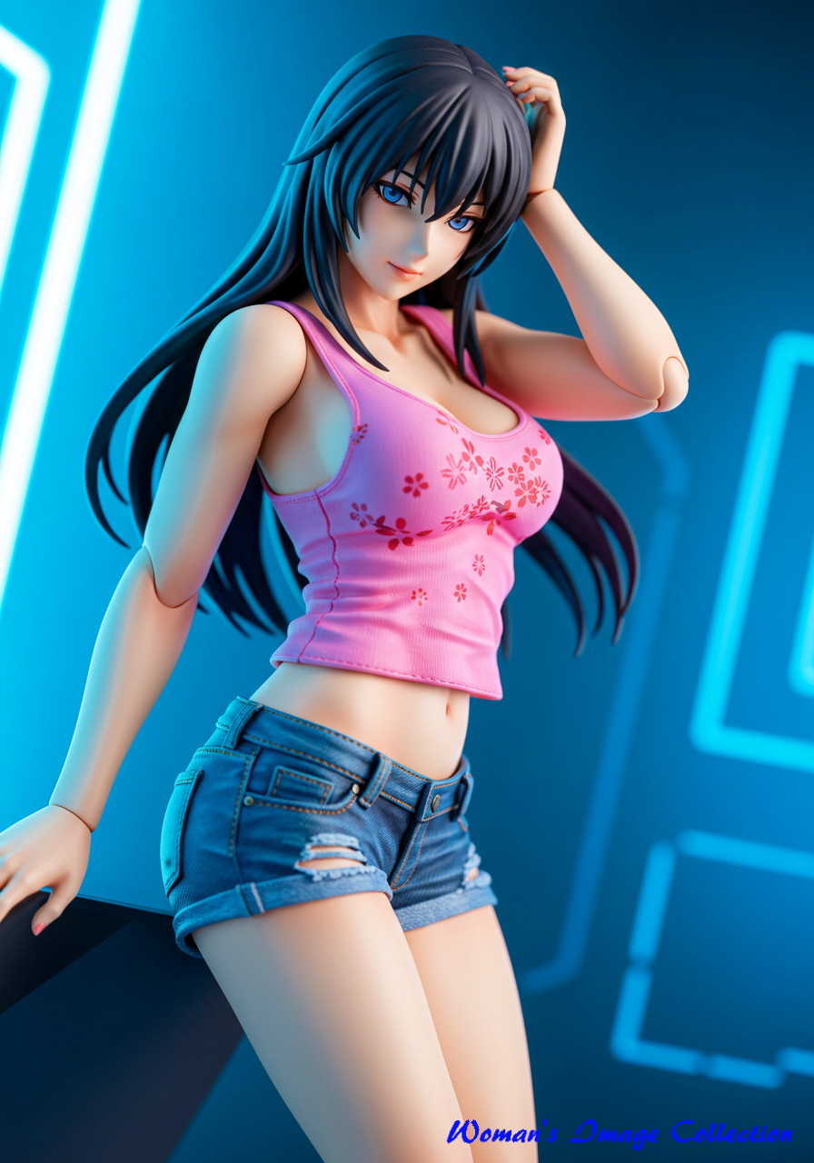 そして、夜の帳が降りた街角で、レオパード柄のビキニとジャケットを纏った彼女。彼女の挑発的な眼差しと、自信に満ちた佇まいは、私が彼女に与えた、反逆の精神の象徴だ。彼女が歩む道は、誰のものでもない、彼女自身の物語。その物語の始まりを、このフィギュアは語りかけてくる。