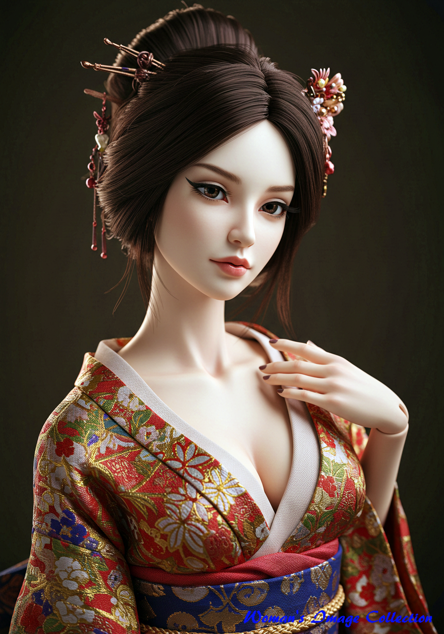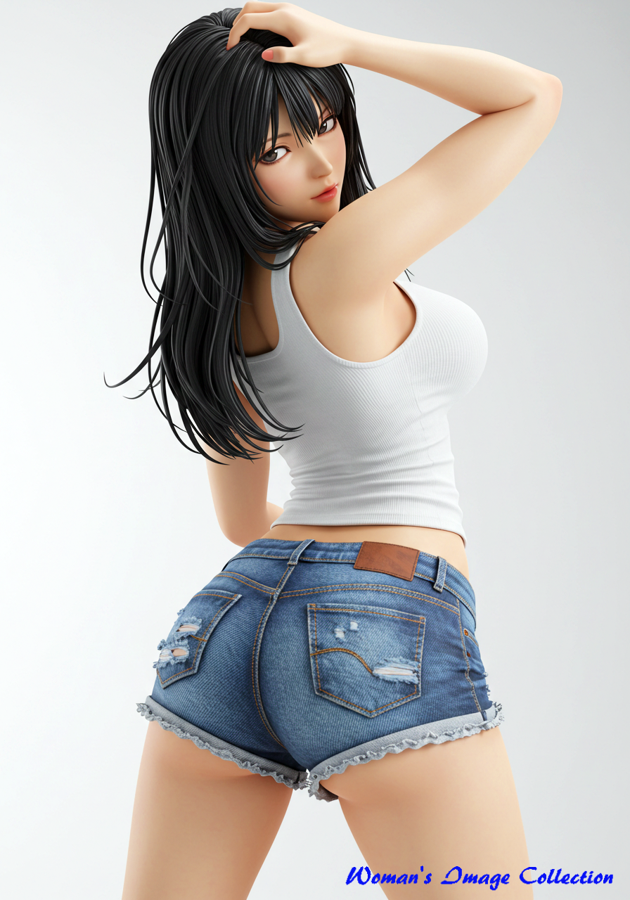 最初に目を奪われるのは、あの夏の日の少女たちだ。彼女たちは、それぞれの衣装を纏い、まるで夏の風の中にいるかのように生き生きとしている。白いタンクトップとミニスカートの彼女。その無垢な笑顔は、私が彼女に与えた、永遠の夏の記憶だ。太陽の光を浴びて輝く肌、風に揺れる髪の毛一本一本に、私は生命の鼓動を込めた。