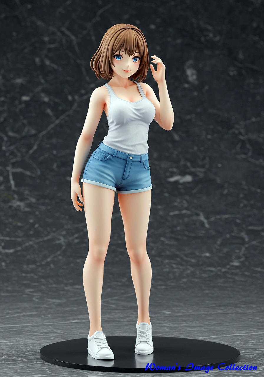 あるいは、プリーツスカートとポロシャツを身につけた彼女。その姿は、放課後のテニスコートを思わせる。彼女の瞳の奥には、青春の輝きと、わずかな緊張感が宿っている。私は、彼女がこれから迎えるであろう、数えきれないほどの青春の瞬間を想像しながら、その指先まで丁寧に造形した。