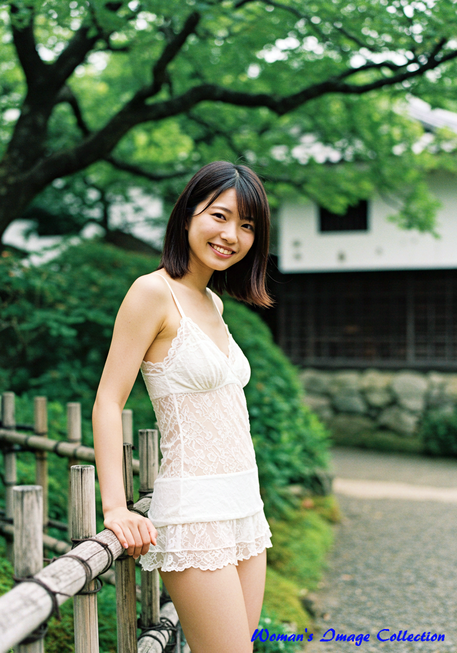 その写真を見たとき、私は夏の日の、歴史ある庭園に漂う、静かで清らかな空気を感じた。それは、古都の長い歴史が作り出す、独特な時間の流れと、若々しい生命の輝きが混ざり合う、甘く懐かしい香り。この写真に写る彼女は、そんな夏の日の物語から抜け出してきたかのようだ。