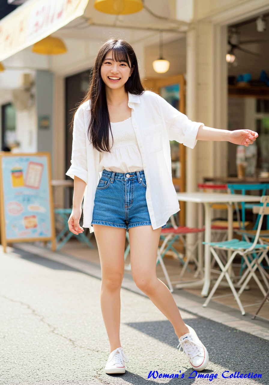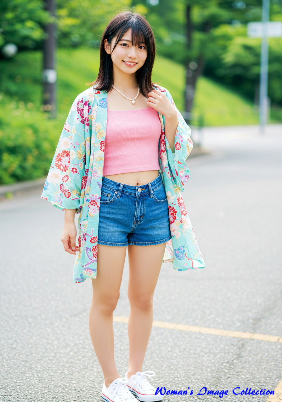 夏の涼しい服、18歳の若い美人日本人女性。