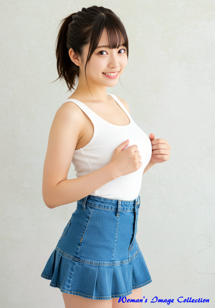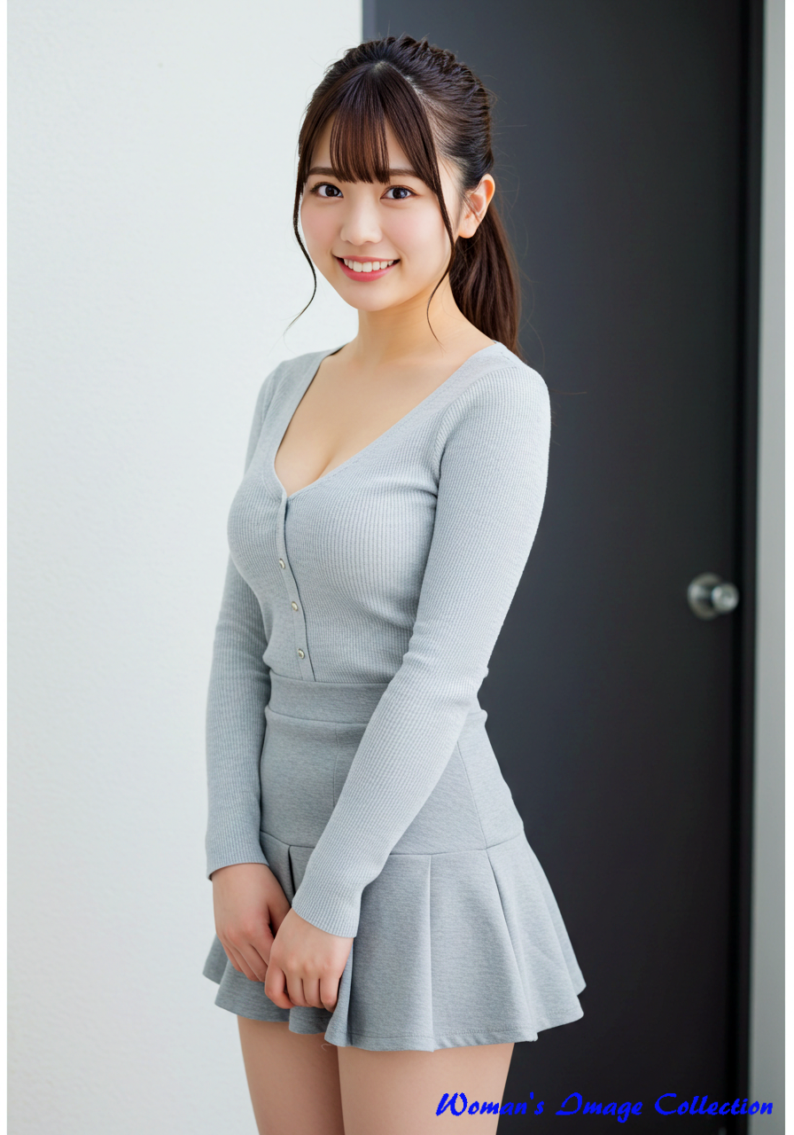the great large breast. This full-length portrait of a cute Japanese actress in her twenties with a ponytail features a round face and an attractive, natural smile. She is wearing Miniskirt that would be perfect for the cover of a fashion magazine.