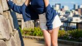 vary tall and very long legs ,skinny woman, the great long large breast. This full-length portrait of a cute Japanese actress in her twenties with a Perms & Waves features a round face and an attractive, natural smile. She is wearing T-shirt dress that would be perfect for the cover of a fashion magazine. Cute poses in the hotel.