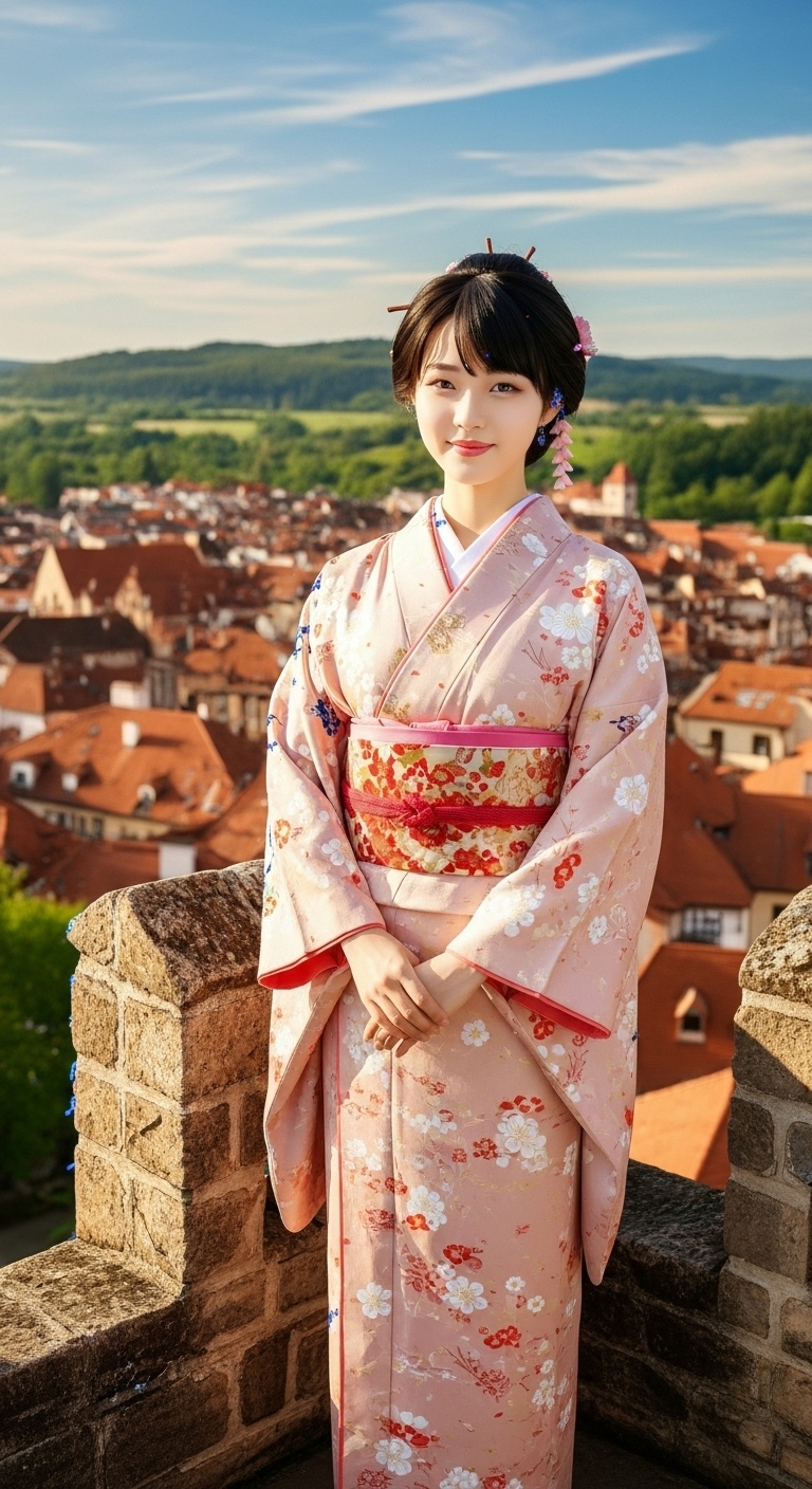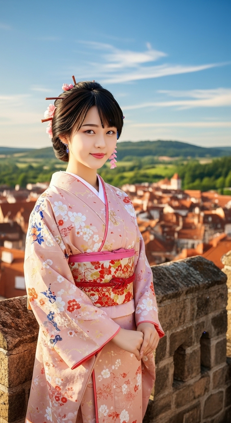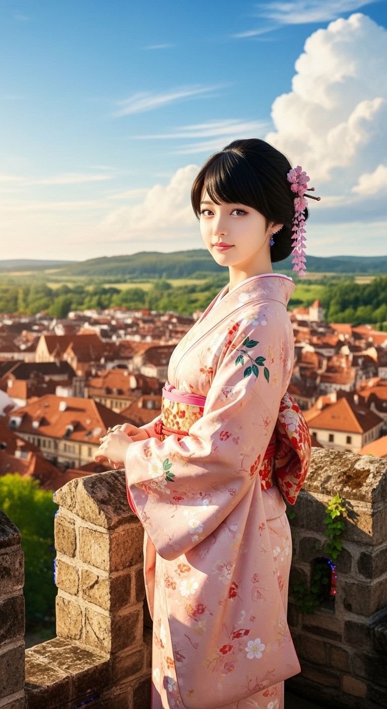 whiskを使って作った画像です。女性は以前imagefxで作成した画像をモデルにアップロードし、背景をヨーロッパにして作成しました。